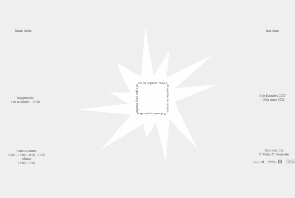 TODO ESTÁ A PUNTO DE EMPEZAR CASYC CREA Ismael Sordo/ Jose Sanz Sala de Exposiciones CASYC_UP Hasta 16 de enero de 2026 Horario Lunes a viernes de 11:00 a 13:00…